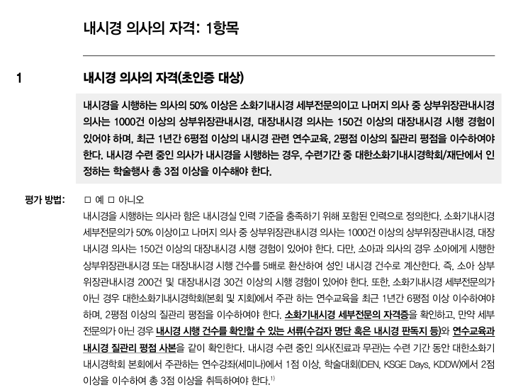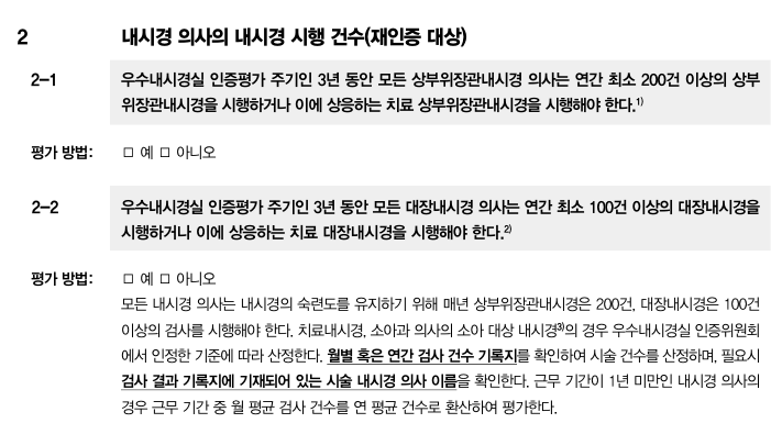 우수내시경실 인증위원회 토의를 거쳐 답변을 드리겠습니다.